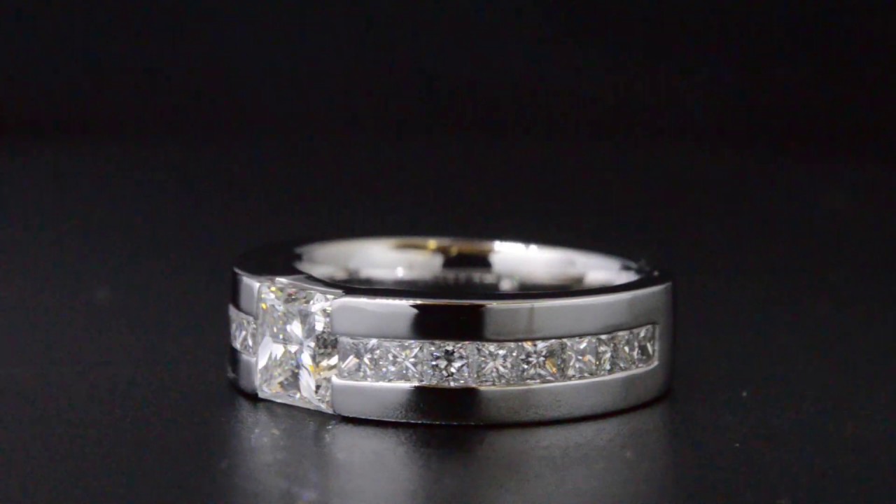 1 8 Ct Princess Cut Natural Diamond Wide Band Channel Diamond Engagement Ring Gia Certified